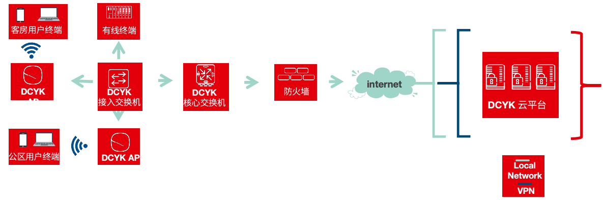 通过DCYK酒店综合云管理平台,用户可以使用智能零接触配置让用户的网络在几分钟内正常运行。